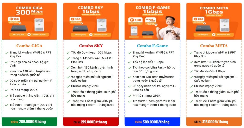 Đăng ký gói Mạng FPT & Combo Internet – FPT Play tại mangfpt.vn ngay hôm nay Quý khách sẽ được nhận ưu đãi siêu hấp dẫn như sau.